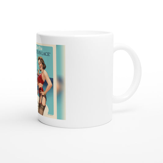 White 11oz Ceramic Mug - Vintage Pin Up Girls - Stockings