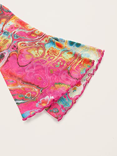 GORGLITTER Women's Allover Print Tie Front V Neck Blouse Flounce Long Sleeve Asymmetrical Shirt Crop Top Multicolor Allover X-Small