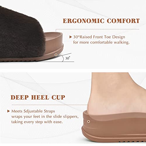 KuaiLu Womens Slides Soft Cushion Faux Fur Sandals for Women Open Toe House Slipper with Arch Support Ladies Slip On Fuzzy Platform Slipper Indoor Outdoor,Brown Size 9
