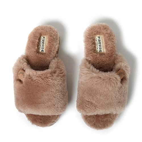 Dearfoams Women's Fireside Cairns Shearling Easy on/Off Slide Sandal Slipper, Driftwood, 7 W US